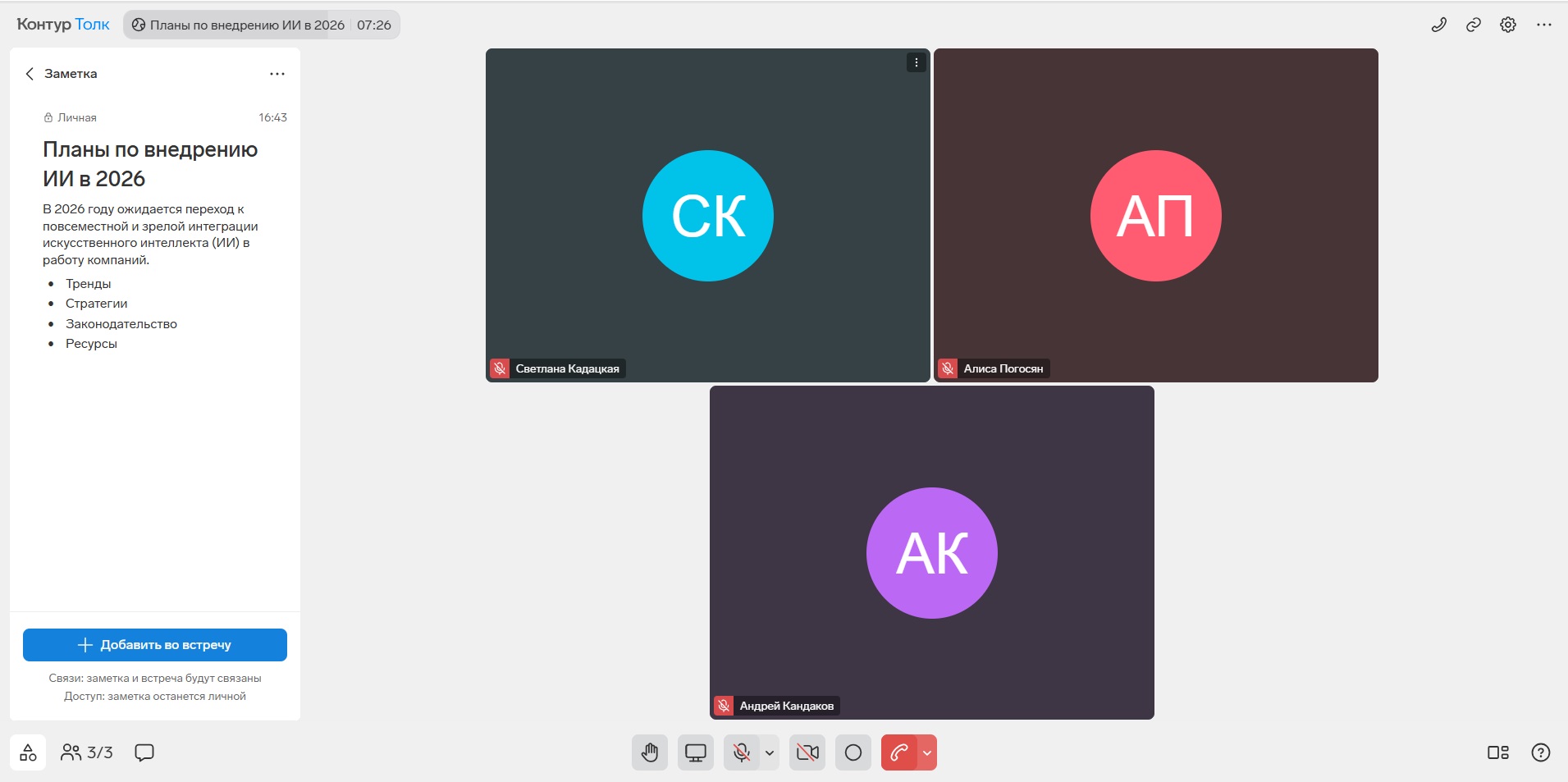 Функционал создания заметок в сервисе Контур.Толк расширен: в настоящее время их можно готовить не только непосредственно во время онлайн-мероприятия, но и заранее, используя раздел "Артефакты".